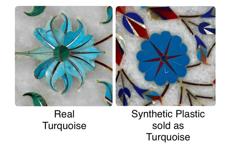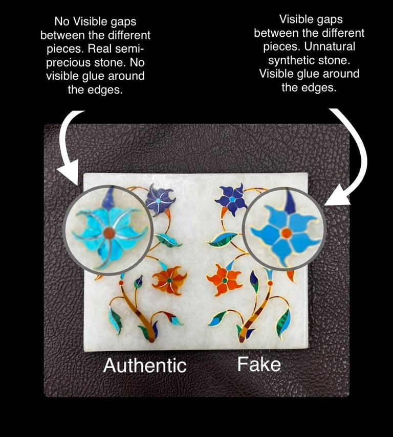 This complete guide is your one-stop resource for identifying authentic Parchin Kari marble inlay. It explores how this centuries-old art—made famous by the Taj Mahal—has gradually fallen into the hands of large-scale mass producers, leaving only a few genuine workshops preserving the craft in its true form. Learn expert tips and practical tests to spot fake Parchin Kari, distinguish handmade pieces from machine-made imitations, identify authentic Makrana marble, and recognize real semi-precious stones versus plastic or synthetic substitutes.